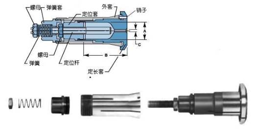 而下图这又是另外一种结构的定长弹簧夹头。主要靠推力进行装夹