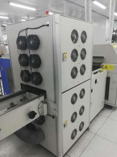 从回焊炉中流出来的板子,温度较高,需要经过一个冷却装置冷却之后,才能流到最后的光学检测站,到这一站结束之后,电子电路板的制造过程就基本完成了,后边的就是对制造好的电路板进行检测了。