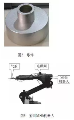 本实例所介绍的数控机床加工工件为圆柱体,如图2所示,重量≤2kg,故机床上下料机器人可选用安川MH6机器人,如图3所示。机器人控制系统为安川DXl00。