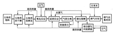 水蒸气气化一般不单独使用,而是与氧气(或富氧空气)气化联合采用,否则仅由水蒸气本身提供的热量难以为气化提供足够的热源。典型的水蒸气气化生成 气的成分 (体积分数)为:CO 28%~42%、H220%~26%、CO216%~23%、CH410%~20%、C2H42%~4%、C2H61%、CnH=2%~3%。由于氢气和 甲烷含量较高,故生成气的热值可以达到11~19 MJ/m3[7]。